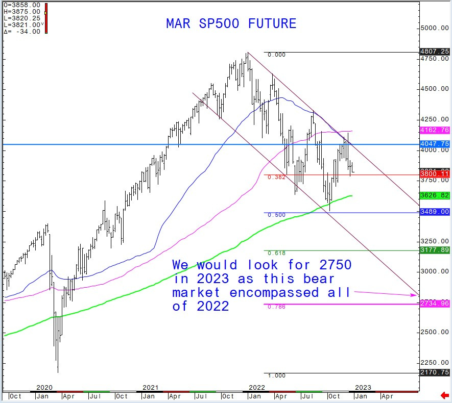This is why we called this move a “regime change” because it had reversed an overly accommodative central bank who failed to recognize the inflationary fire that its zero rate regime coupled with trillions in fiscal stimulus were stoking. We aren’t sure how they failed to raise rates in 2021 which they should have, but they did and so what 2021 led to was the beginning of a year long bear market in equities. This bear market and its downward channel are both obvious in the SP500 and Nasdaq futures charts shown here: