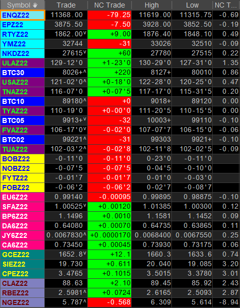 As we noted early the risk for the board to turn off the Green positive light has been the norm but a few markets are still positive but equities outside the R2k negative right now, here is a quick snapshot: