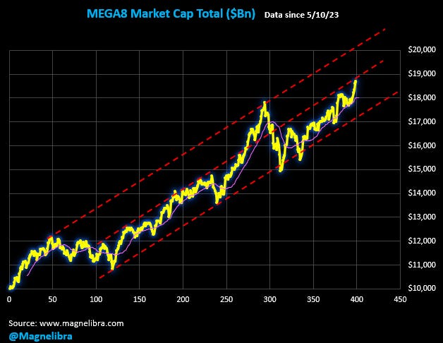 The MEGA8s chart does concern us here as to the extension levels it has reached in our 2 year long trend channel: