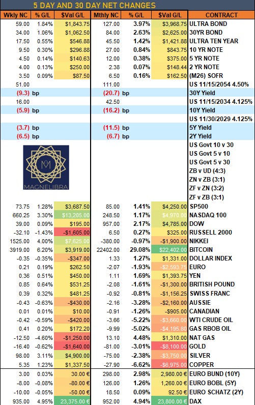 DISCLAIMER: For educational purposes only. This is not a solicitation to buy or sell commodity futures or options. The risk of trading securities, futures and options can be substantial and is not for everyone. Such investments may not be appropriate for the recipient. The valuation of futures and options may fluctuate, and, as a result, clients may lose more than their original investment. Nothing contained in this message may be construed as an express or an implied promise, guarantee or implication by, of or from Magnelibra Capital Advisors. Magnelibra the Commodity Trading Advisory and its proprietary long/short commodities, futures and options managed accounts may hold long and or short positions in the various futures and markets that Magnelibra covers. We will never claim that you will profit or that losses can or will be limited in any manner whatsoever. Past performance is not necessarily indicative of future results. Although care has been taken to assure the accuracy, completeness and reliability of the information contained herein, we make no warranty, express or implied, or assume any legal liability or responsibility for the accuracy, completeness, reliability or usefulness of any information, product, service or process disclosed. If you are interested in opening an individual managed futures and options account to compliment your overall investment portfolio you can visit our website at https://magnelibra.com for more information. We are implementing a new trading program launching at the start of the new year, which will include access to Bitcoin futures and options. Please contact or make inquires directly to our introducing broker Capital Trading Group, please contact Nell Sloane at nsloane@capitaltradinggroup.com