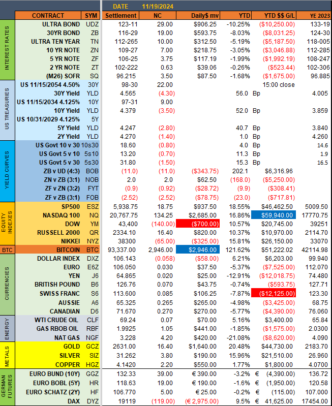As far as the settlements page, US bonds showing some life and the other markets pretty lack luster all around not much movement: