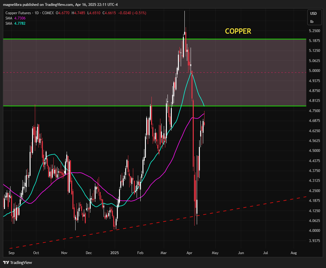 One last futures chart is Copper, expect resistance at 4.75 any new seller here should keep stops above 4.90: