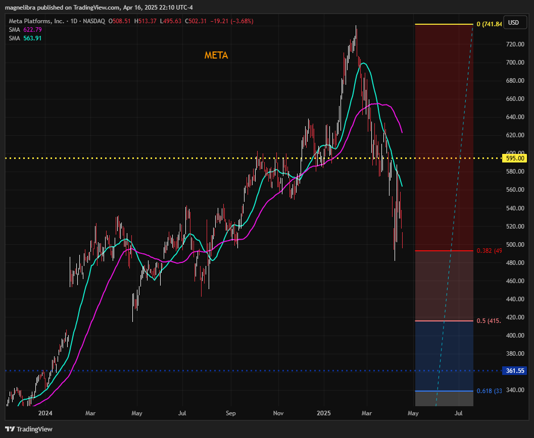 One last chart is META, looks downright awful and a move to $405 wouldn’t surprise us, and any chance to sell above $530 would be a gift: