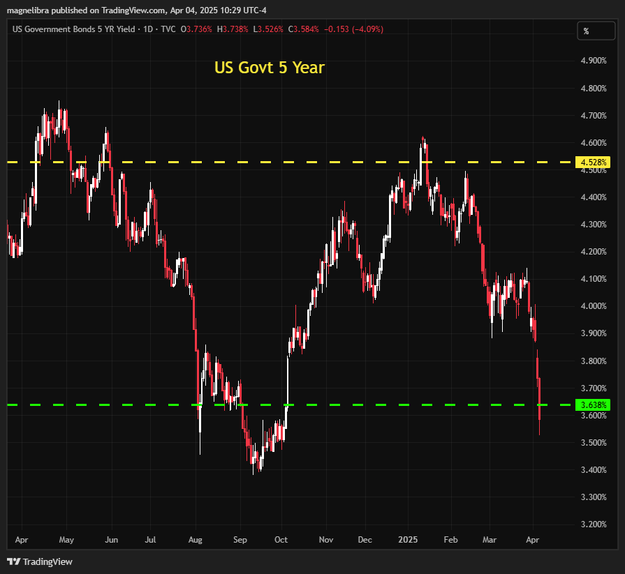 Will the consumer complain about the 5Yr govt bond yields tumbling from 4.62% to 3.52% a drop of 110bp??? Especially those looking to extract some home equity or take out new loans? Well than we need interest rates to continue to tumble in order to do that, here is the 5Y govt. note yield chart: