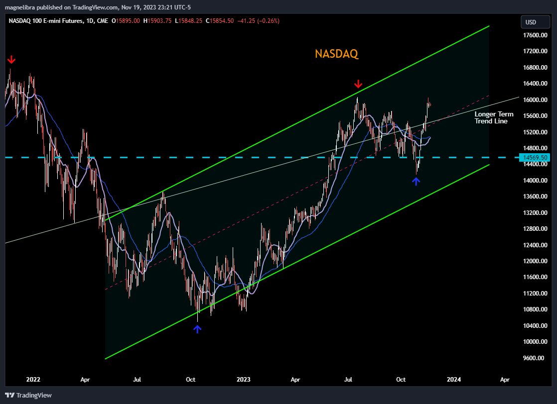 Ok lets look at a few technical charts for the week. The Nasdaq futures have had a really good run and seem to be in a consolidative state. We like the long side against 15500 but a trade below there may open the door to further selling. As long as the market holds this area, bulls will remain in control: