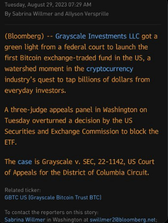 As far as Bitcoin, well, the Appeals panel in DC overturned an SEC decision to block the ETF from Grayscale. This is indeed a very big deal and further solidifies that Blackrock will also be successful in their attempt to capture all of this Crypto money and gain approval for their ETF sometime early next year: