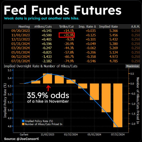 So that so called strength in the labor market, well, not so much…and today the FED FUNDS are reflecting a reversal of the Jackson Hole rate hike future path as November odds were cut in half: