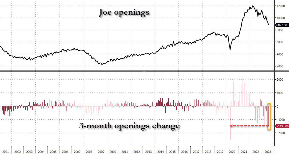 A couple of items to point out here besides the Nasdaq outperforming the other indexes, fixed income and Bitcoin. First the US Bond market saw a stellar 7Y auction today with a 2bp stop thru (high demand) and an indirect takedown of 75.25% well above the 6 month averages (strong appetite, including foreign entities like other central banks). Secondly the JOLTs survey was flat out a mess and as we have been writing for quite sometime, we know the job openings 12 mil. Plus at one time was just a ruse and we are being proven right as time moves forward: