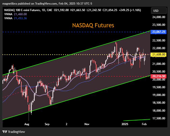 The Nasdaq futures are right at their pivot again as well the 21608 area: