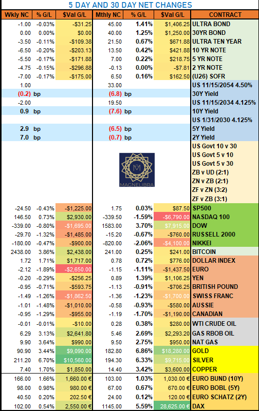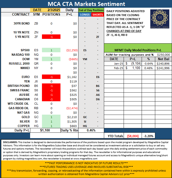 As far as the MCA CTA Markets Sentiment Tracker, the ZF (5Y Note) moved to a -1, J6 and RB moved to neutral status: