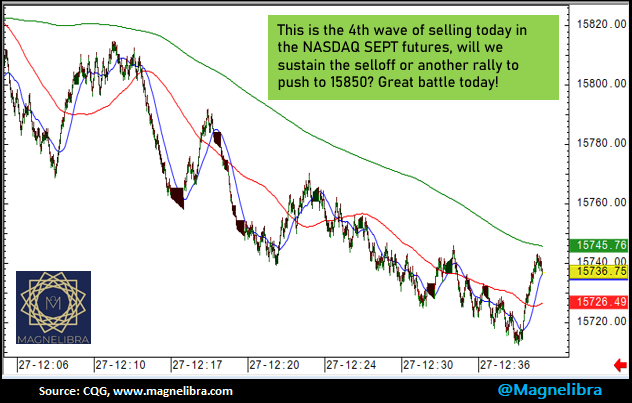 We also saw continued waves of selling in the Nasdaq futures as the 15900 level was tested and held again. We posted this on our twitter at 12:40est and the market continued to drop from there: