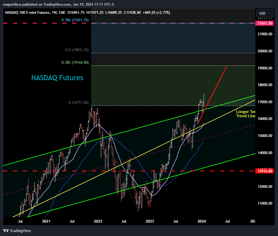 When we look at the weekly chart, well 19144 doesn’t seem unrealistic and we now have posted a red trend line on our chart as our base case bid line for support. As far as the SP500 futures it is also confirming a break out of the double top: