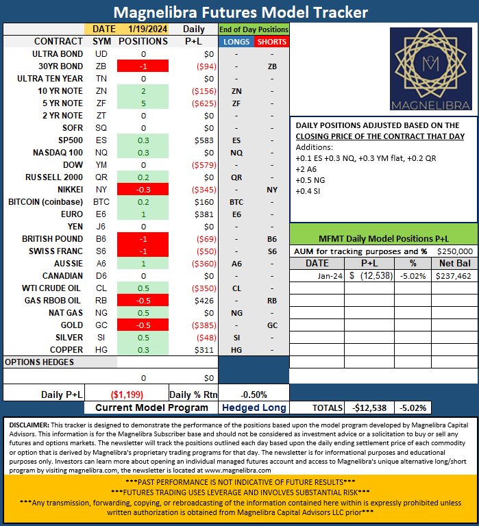 Ok as far as our Futures Model Tracker it has now flipped to a hedged long based upon the moves today, please note the equity additions, the Aussie long, Nat Gas long as it dipped into our support areas and additional Silver now in the tracker: