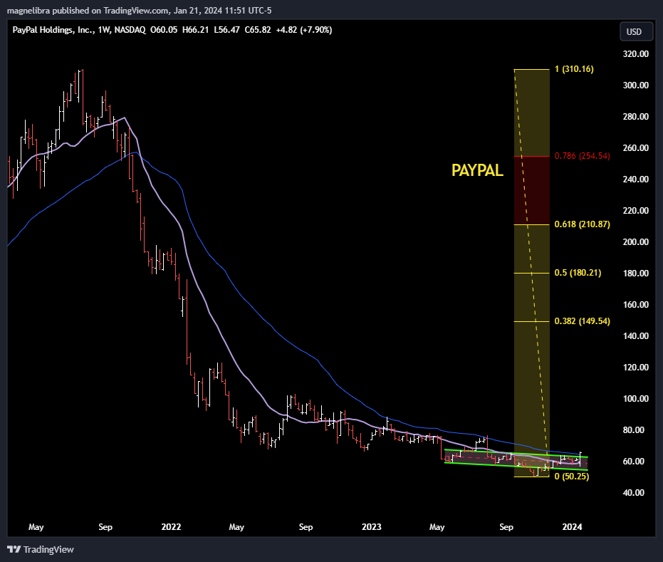However and even more significant is the weekly chart when we show you this you will be shocked as PayPal is down 79% from its highs in Q4 2021! We believe the institutions are stepping in here and will continue to do so:
