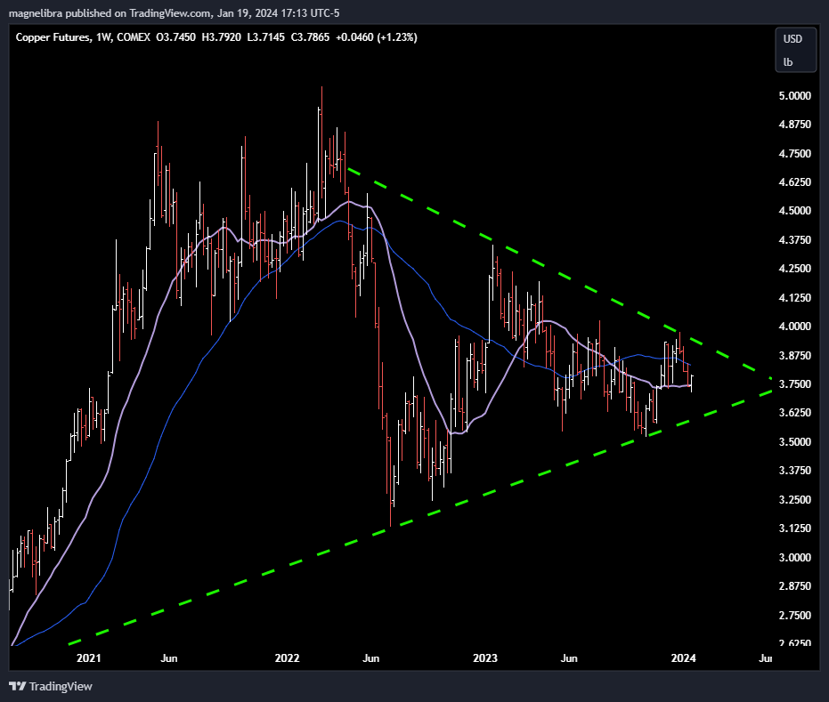 Also let’s just take a quick look at Copper, we know China is fundamentally flawed but we like the technical set up here and the 21p VWMA holding has prompted a more bullish theme here now: