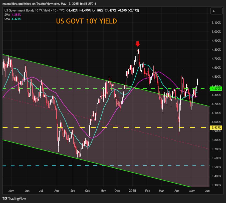 The U.S. Bond market doesn’t like the risk on theme or so it seems as yields are jumping today. The US Govt 10Y is +9.5bp now nearing 4.50% once again: