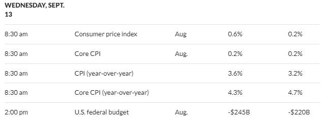Ok we have CPI on tap tomorrow the expectation is for it to come in at 3.6% which would be up from 3.2% last month however the Core, which is what the FRB looks at is expected to fall to 4.3% from 4.7% last month: