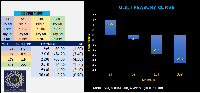The US Bond Yield Curve has continued to flatten into this number, it will be interesting to see if the current higher yields flatter curve will continue post number or if this will be used to reverse out of these positions.