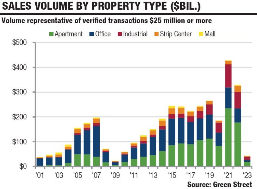 This is an absolute total volume collapse. This is stagnant supply and a massive reduction in the velocity of CRE turnover. This is a duration extension that will eat up a lot of excess capital for some major investors and will also lead to a reduction in prices and most certainly an increase in cap rate expectations. Money is not moving and this is what deflation looks like. Not to mention the massive amounts of debt that needs to be refinanced at what 2x, 3x rates of today? This is a big deal and we must keep a diligent eye on this!