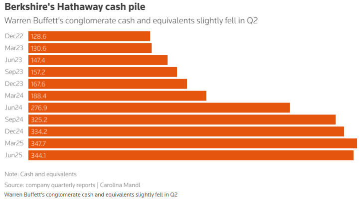 Berkshire cash levels fell just a tad, but the company still holds $344.1Bn: