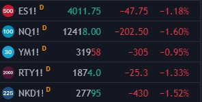 Tonight’s trade is a continuation of Friday’s selloff and here is a quick look at the equities overall: