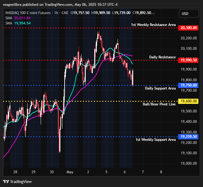 As far as the Nasdaq futures, the lost the daily support over night from yesterday which is now the resistance level at 19990 and are currently bouncing from 19750 initial support for today: