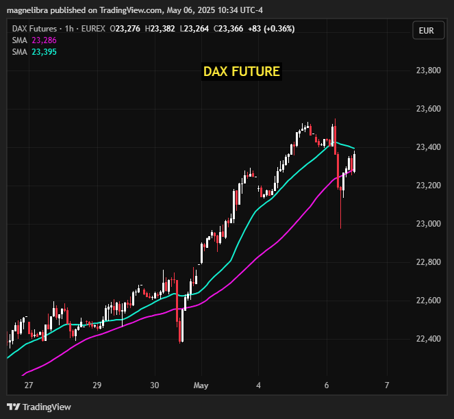 Alright in other news we saw a first out of the EU as the German chancellor Merz failed upon the first vote failed to gain the majority required. The second vote was successful but presents the reality that the political sphere in Germany is splintered. This news initially whacked the DAX but soon recovered. It will be interesting to watch the reaction to the 23400 area now: