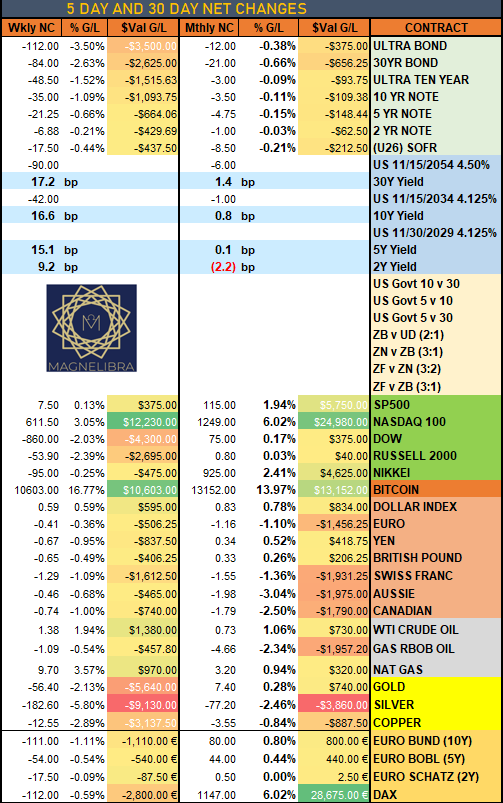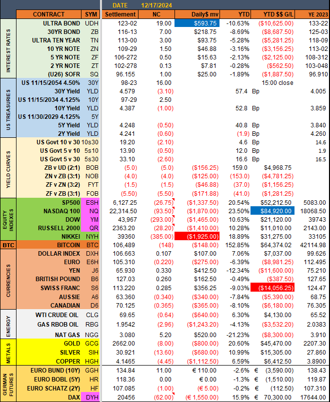 As far as the settlements we rolled US equity and Dax futures to March 2025 contracts the ultra bond contract the days meager winner with the Nikkei the biggest loser: