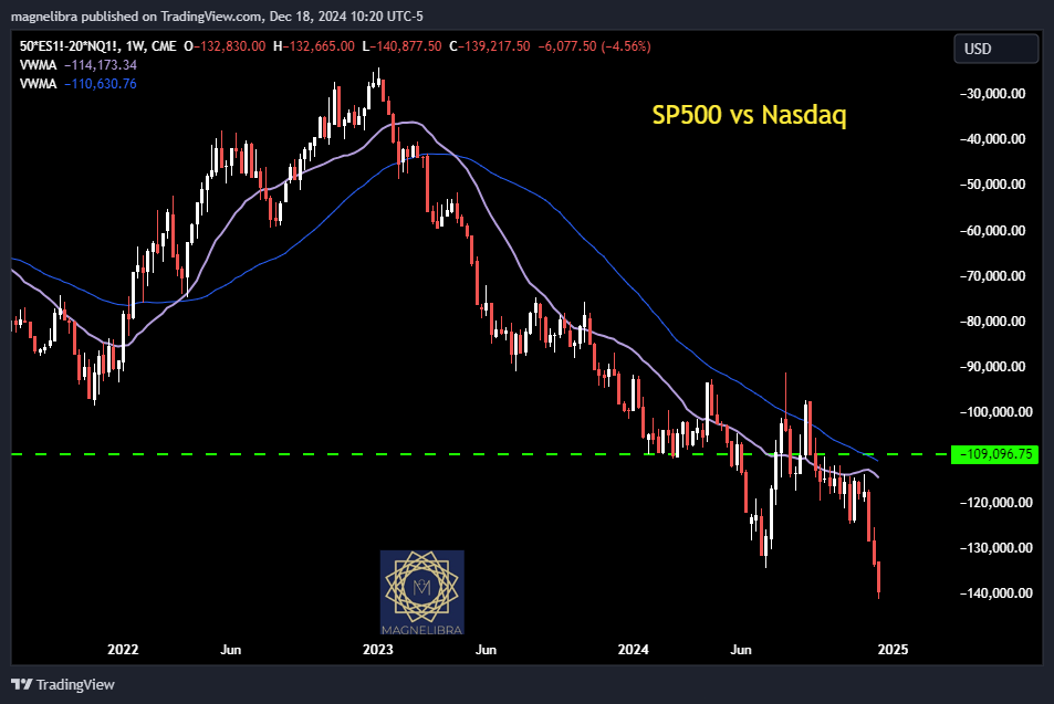 When you look at this spread, you can also see that in 2 years the SP500 contract has lost nearly $100k to the Nasdaq, an absolute amazing concentrated run!