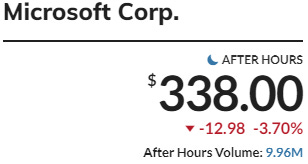 In afterhours trading per MarketWatch MSFT is -3.7% at $338.00: