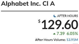 Per MarketWatch, Google is +6.05% just a tad under $130.00 :