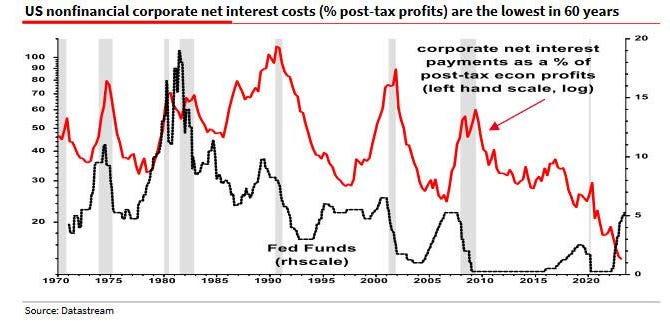 We also keep hearing how corporations are still paying record low interest and how its defying the higher rates that we have…well we just have to say, its a duration thingy and when a Corporate Treasurer issues 5Y notes we can’t help but think 2018 and 2019 vintages will have the same interest payment now will they? In fact a recent S&P Global Ratings report stated that U.S. financial and nonfinancial corporate debt maturing through 2024 totals $4.8 trillion!