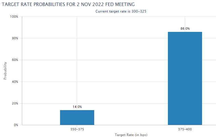 Anyway 75bps is on tap as indicated by the CME FED Watch Tool:
