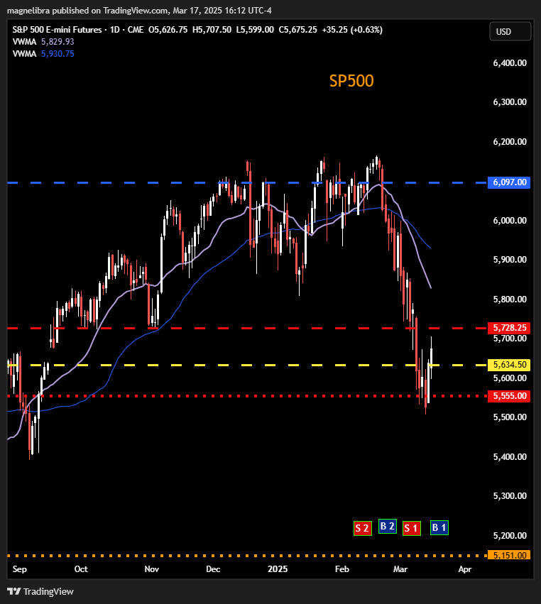 We will expect the equity markets to continue with their consolidative to higher mode here and we haven’t rolled the futures yet to June. The EminiSP500 range we target is 5555 to 5728 for this week with 5634 our pivot for now and longs in control now down here: