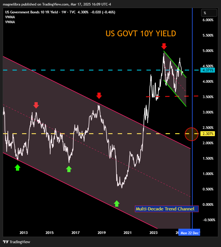 The data from today was abysmal as retail sales continues to weaken and Empire Manufacturing was also well below expectations. We expect the data to continue to exhibit weaker than expected and that this trend will eventually lead to opening the door for the FOMC to cut rates. As far as US government yields today, the 10Y is -2bp at 4.30% and our line in the sand remains above at 4.371%: