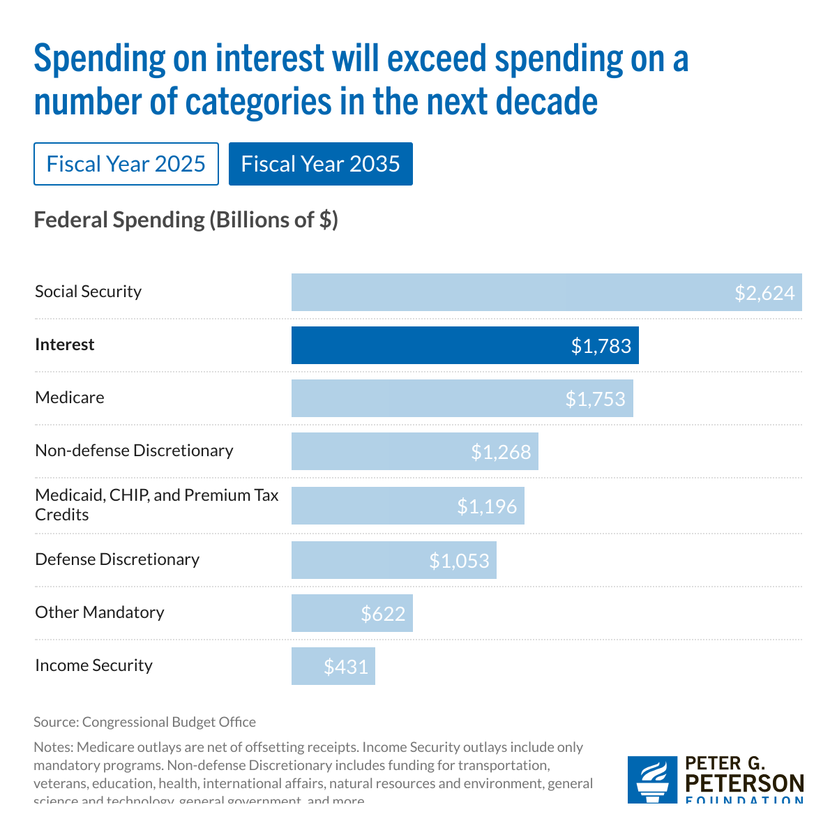 Here is another take on federal spending from the Peterson Foundation which shows interest taking over second place in regards of largest expenditure: