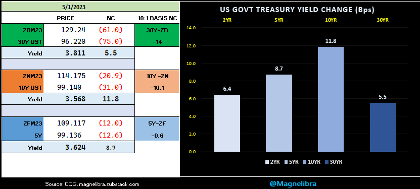 This should not be a surprise as next week we see the US Treasury will auction, $96 Billion next week of 3s,10s and 30s for settlement on May 15th. We have a lot of data this week as well from JOLTS, to ISM, NonFarm payrolls and of course the FOMC (FRB) and ECB decisions.