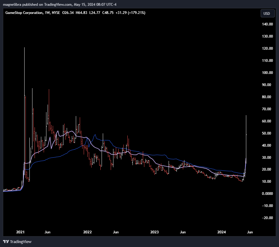Here is the chart of GameStop now showing the move back in 2021 vs today: