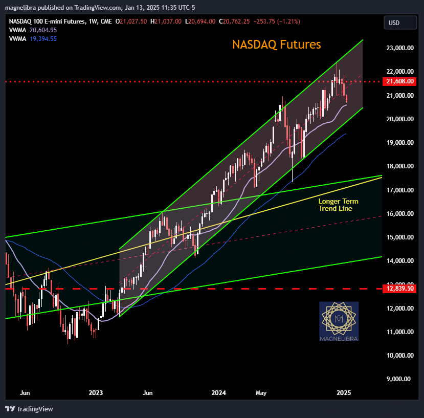 So has the FOMC lost control of the long end? Are bond spreads going to continue to steepen and force the FOMC to halt their cuts for now? It sure seems that way, but if this is indeed the case, Equities have the most to lose here in the short run and it seems the whale selling that retail has been buying into for the last 2 months, is about to get smacked in the face, hard. We warned you guys of a trade on the weekly below 21600 in the March Nasdaq and now we are 1000 points below and bear mechanical programs are all in place and will sell any and all rallies up to that point: