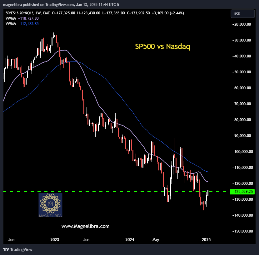 This week is pivotal for the ES/NQ spread chart, we love this chart and it will confirm the overall US equity market reversal and we are witnessing the beginning of the Nasdaq strength finally giving way to the broader SP500 market vis a vis: