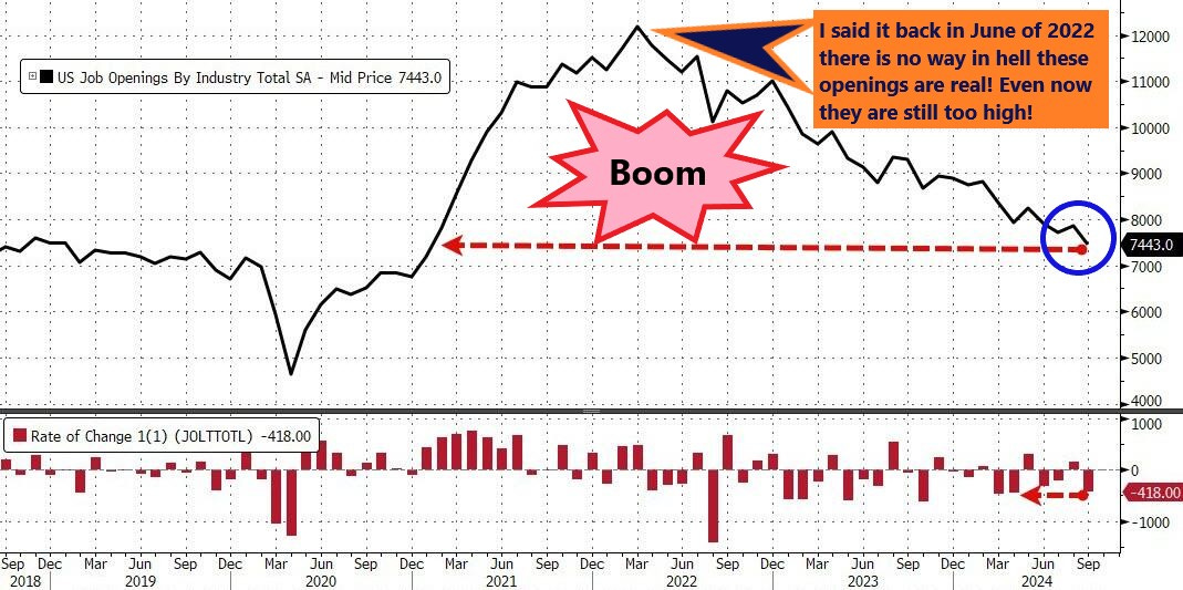Oh almost forgot, wanted to share this update to the JOLTs jobs data, 2 years ago we called BS on the 12 million job openings, said its nothing more than fake data from the data suppliers like LinkedIn, ZipRecruiter, Indeed etc and voila fast forward to today! We still think this number is still way to high!