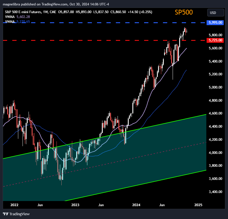 One futures chart we wanted to share is the SP500 Dec. future, last weeks bearish candle if confirmed this week, should set up the ultimate volatility structure for next weeks election. Usually these big time events have a way of shaping into maximum adult swim only moves and technically I have to say we are coiled and ready:
