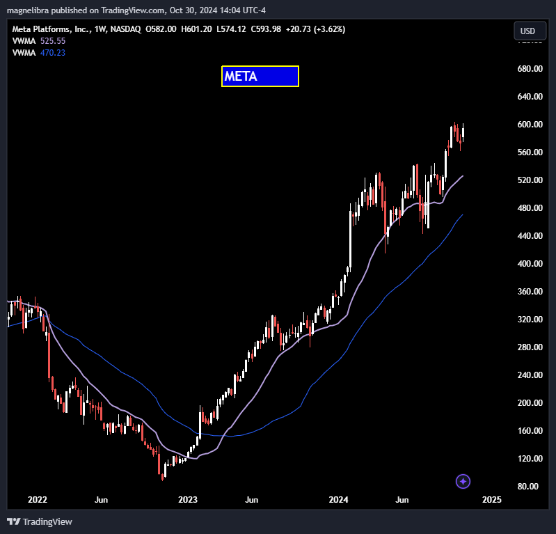 Big earnings due out today for META and the options breakeven straddle is indicating a 8.2% move with the 11/1 Expiry 592.50 strikes. As always retail skew to the upside for the calls but honestly seem pretty lackluster in any real bets either way. If bearish the 590 puts are $22 indicating a $567 breakeven or 4.3% downside move. Obviously META has been on a rampage higher and it would not shock us the least bit to see some of that recent run up retracted on this earnings report. We do like the base break out above $520 but buying on the highs doesn’t seem to make sense here, but will see what earnings does: