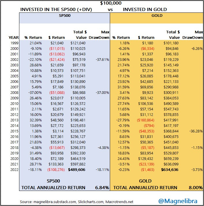 Well in reality, since 1999 The SP500 has had multiple double digit drawdowns and two -37%+ years, while that old relic Gold, on an annualized basis since 1999 has outperformed the SP500 by 1.16%.