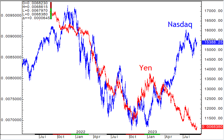 We know Japan and the Yen are starting to realize that the NIRP will have to come to an end and we believe this is a good thing, but is it a good thing for the carry traders out there or risk assets in general. When we look at the Yen vs the Nasdaq for instance, it seems as if the Nasdaq may see some selling pressure if the Yen does indeed bounce from here: