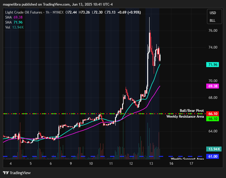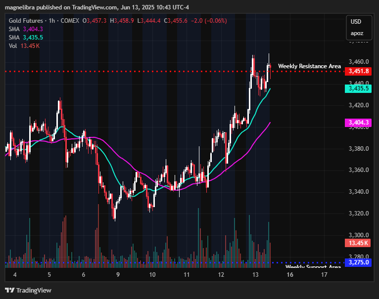Gold Futures also spiked on the news moving it past our $3451 weekly resistance, however we would not be buyers of it at that level, rather $3400 offers a much better location for patient longs, the war spike is reactionary and Gold tends to level out quickly and remove thee one off spikes: