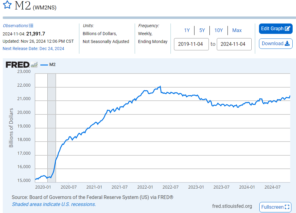 In fact when we look at M2 it should be very clear as to what has driven the massive expansion in equity and real estate prices as M2 since 2020 has exploded from $15.3T to a high of $22.05T +44.1% on the highs: