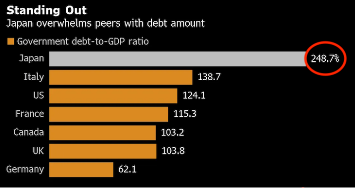 This would widen Japan’s already massive budget deficits and push debt-to-GDP (over 200%, one of the world’s highest) even higher, requiring more bond issuance. As we showed from the debt to GDP chart above