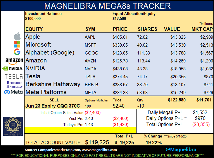 The Tracker since inception is +19.22% and the MEGA8s are +$1.6T in market cap!