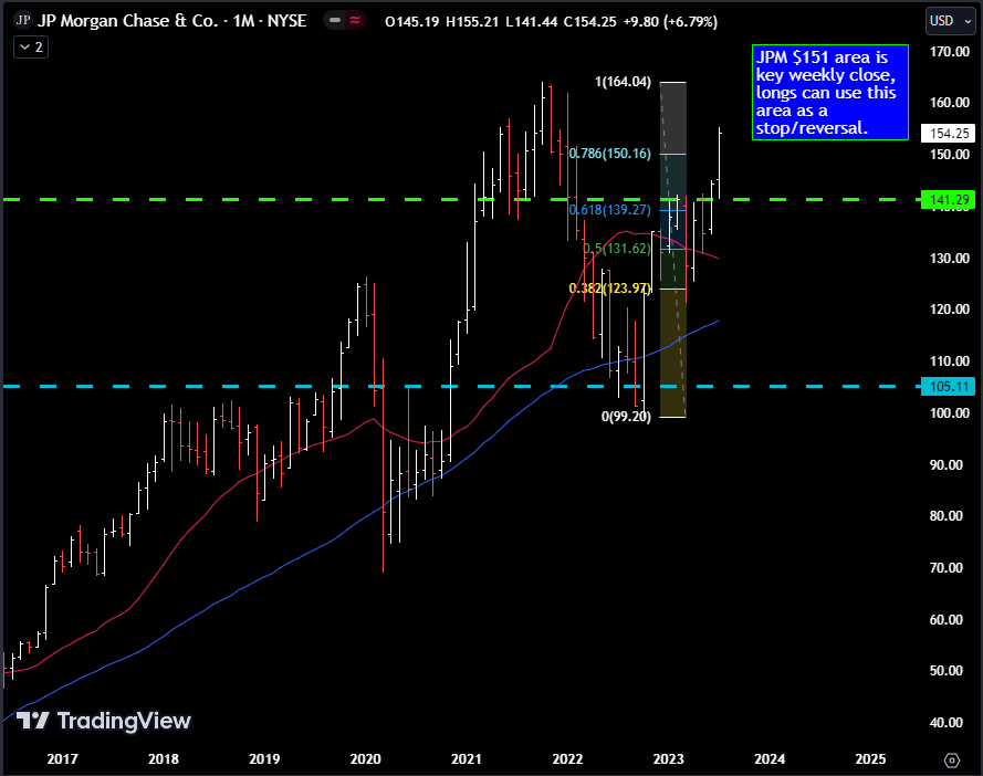 Another equity we want to keep an eye on is JPM Chase, this equity has had trouble holding this $151 area before and we would think any longs would vacate this trade on a settle below that number, so this is another one to keep a close eye on: